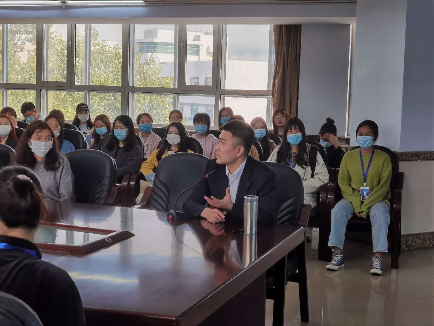 贺强书记的讲座从研究生和本科的区别、研究生的学习生活、心理活动等几方面进行耐心讲解。贺书记的讲解案例丰富、寓教于乐,对校园安全常识和心理健康知识信手拈来。讲座气氛欢快轻松,故事分析引人深思,同学们都认真倾听记录,收获满满。