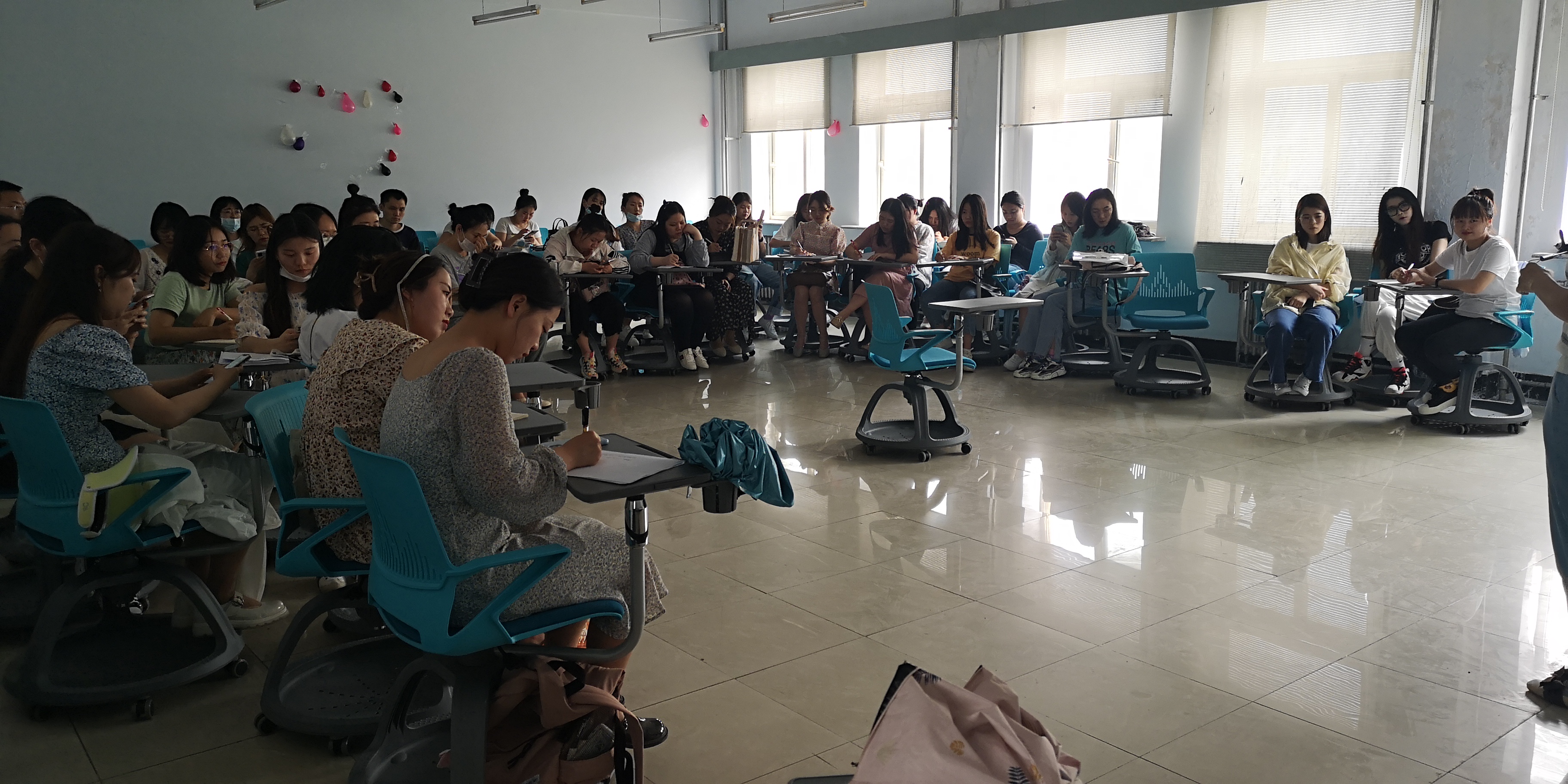 辅导员曾媛向同学们详细分析了当下的就业形势和学院就业情况等具体数据,使同学们对就业的政策有了更深了解。对于待就业和拟出国出境的同学,辅导员老师建议这些同学可以先找工作,先就业再择业,学院会为同学们提供各种帮助。在分享会的最后,曾老师一一与未就业的同学们确认毕业意向信息,学院进行了详细的整理汇总。