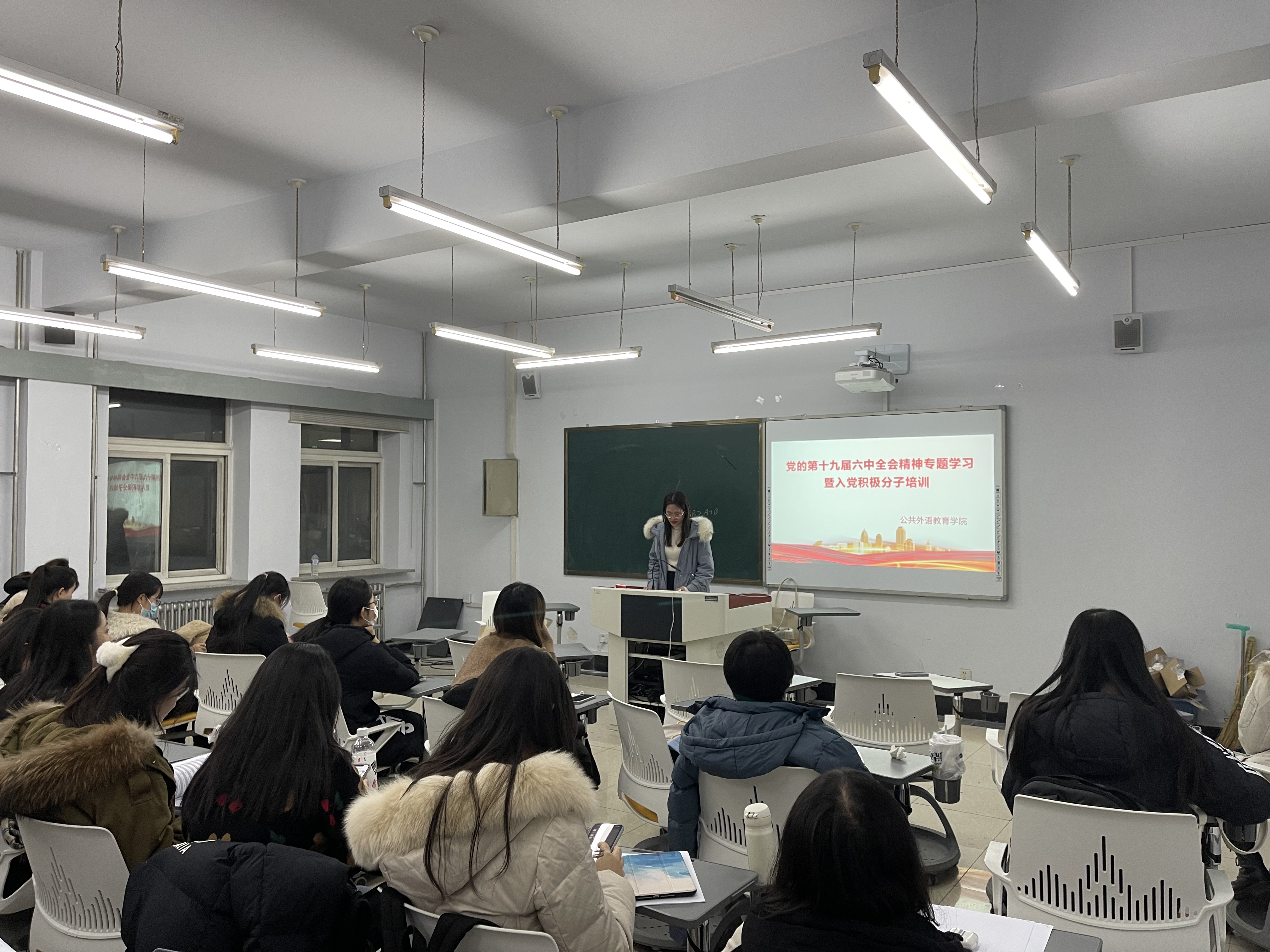 2021年11月23日,为积极响应国家学习十九届六中全会精神的号召,公共外语教育学院组织研究生召开会议精神专题学习会暨入党积极分子培训。公共外语教育学院全体研究生、博士生党员以及入党积极分子共同深入学习贯彻习近平总书记重要讲话精神。此次学习旨在通过回顾中国共产党发展的历程,认识到第十九届六中全会召开的重要性。