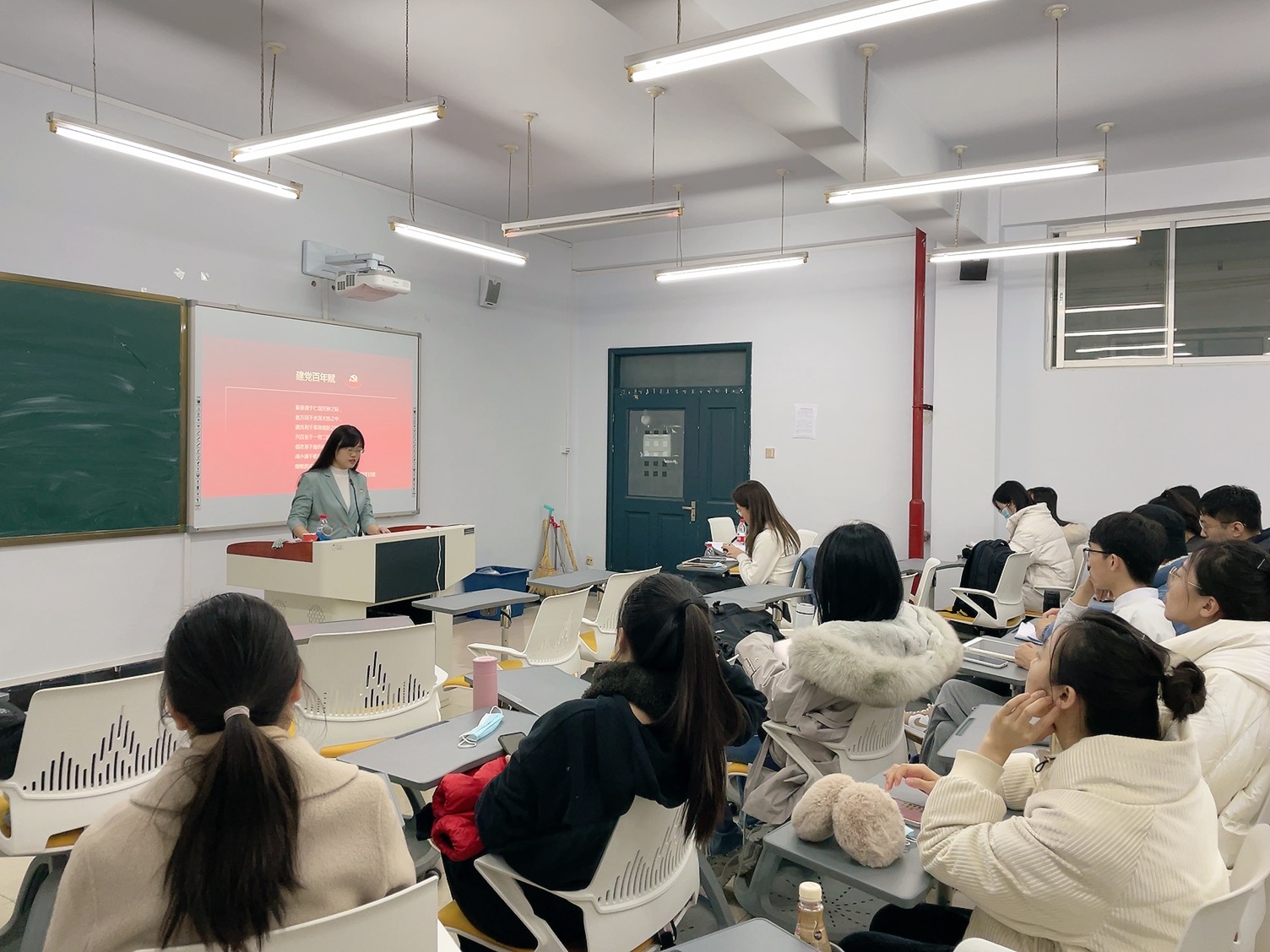 陈洋从四个方面对我党百年奋斗史逐一进行讲解:中国共产党的百年奋斗和伟大成就、中国共产党的百年奋斗经验、从党的百年历程中汲取抗疫精神和中国共产党百年奋斗再起新征程。陈洋向同学们介绍了十九届六中全会的情况和内容,指出十九届六中全会的着力点在于总结党的百年奋斗成就和历史经验,并审议通过了召开党的第二十次全国代表大会的决议。接着,陈洋博士细致讲解了党伟大奋斗精神财富——“十个坚持”,指出回顾历史,才能总结历史经验、把握历史规律,增强开拓前进的勇气和力量。最后,她将如今遍布全球的疫情与中国赶考相结合,从党的百年历程中汲取抗疫精神力量。2019年末新冠病毒突然袭来,我党组织开展全方位防控工作,疫情防控取得了显著成效,这是因为中国始终坚持党中央坚强的领导,面对防控新冠病毒的战斗,上下齐心协力,快速响应,积极动员群众、组织群众、凝聚群众,构筑起群防群治的严密防线,形成了团结一心的强大合力,汇聚起疫情防控的硬核力量。