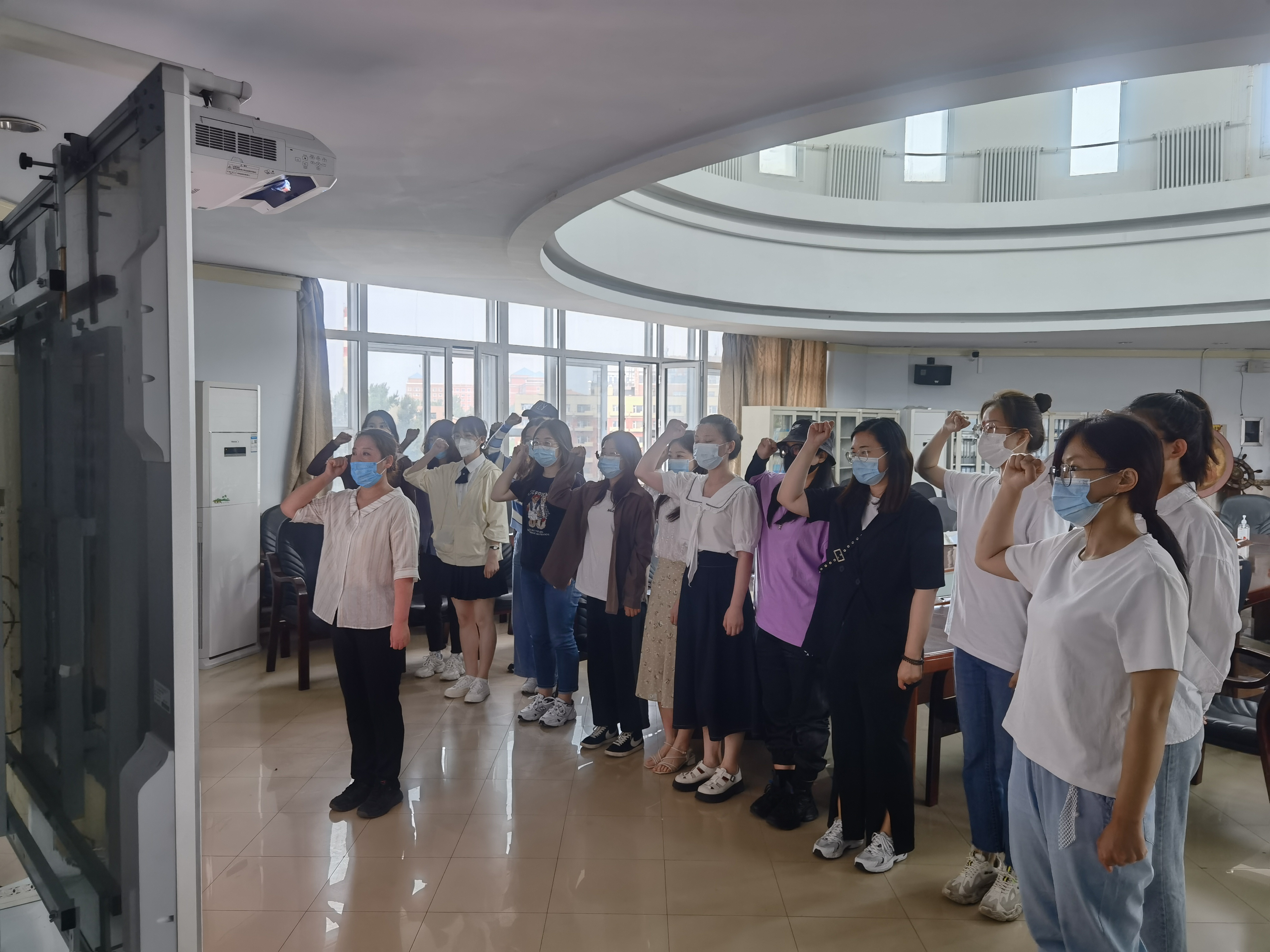 党课结束后,学院举办了重温入党誓词的活动。全体毕业生党员在徐杰副书记的领誓下,面向鲜红的党旗重温入党誓词。这场毕业生党课和重温入党誓词的活动,对毕业生党员坚定理想信念,永葆共产党员的政治本色,走好新时代的长征路具有现实的指导意义。