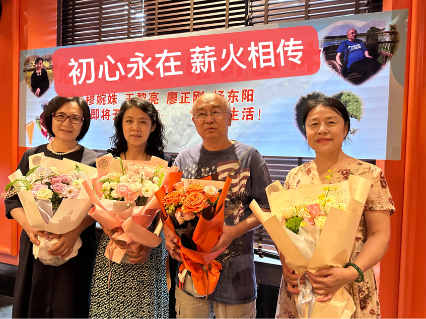 倾尽丹心育桃李,奉献韶华铸师魂。为感谢穆婉姝、廖正刚、王黎亮、杨东阳四位教师为教育事业所付出的辛苦努力和无私贡献,第七支部全体党员同志与教研室全体教师于7月4日为四位教师隆重举行了荣退仪式。仪式上大家回顾了四位老教师几十年如一日坚守教育初心,坚持为党育人,为国育才的教学生涯,这种品格和精神激励着在职教师不忘初心,立足岗位,接续奋斗,实干争先,续写光荣!