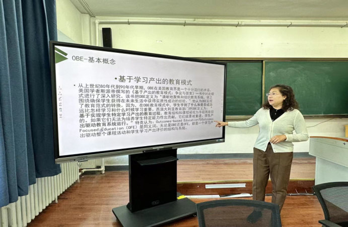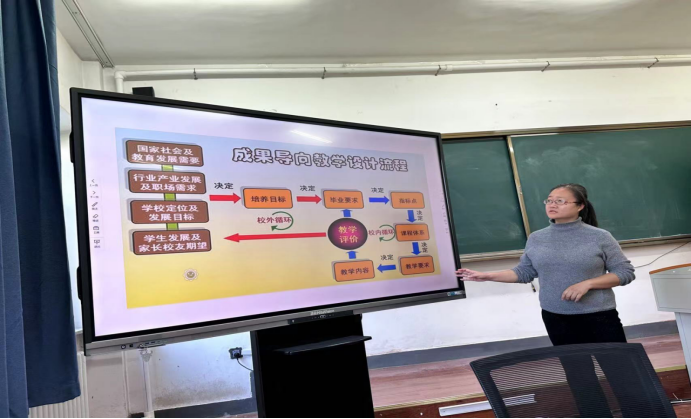首先由课程团队负责人陈琳老师从OBE模式下的课程整体设计进行了汇报。她首先介绍了0BE模式的基本概念内涵以及其在高等教育领域日渐兴起的趋势,然后从课程目标设计和教学活动两大方面进行讲解和示例。她指出,基于OBE模式,教学目标的设计应依据产出成果反向设计,避免过于宏观或微观。之后,陈琳老师结合中国文化的英文表达课程,展示了OBE模式下如何设计多样化的教学活动,介绍了具体的方法,流程以及评估方式。