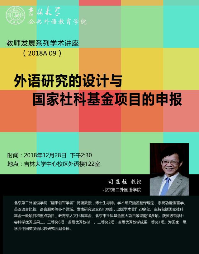 讲座题目:外语研究的设计与国家社科基金项目的申报
