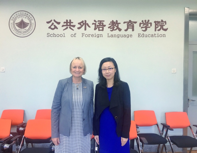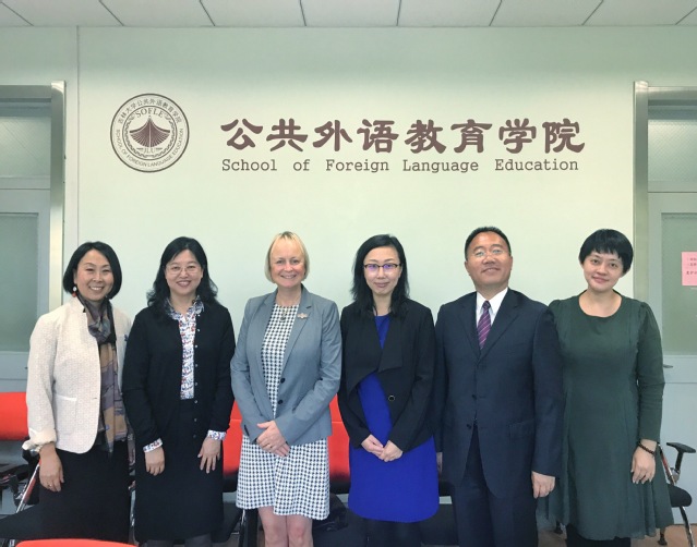 9月1日上午美国肯塔基大学助理教务长苏•罗伯茨女士、孔子学院院长修华静女士来访公共外语教育学院,与公共外语教育学院的代表进行了会谈。会谈由院长潘海英教授主持,原院长战菊教授、副院长杜中全副教授、国际处综合科科长白茵参加了会谈。